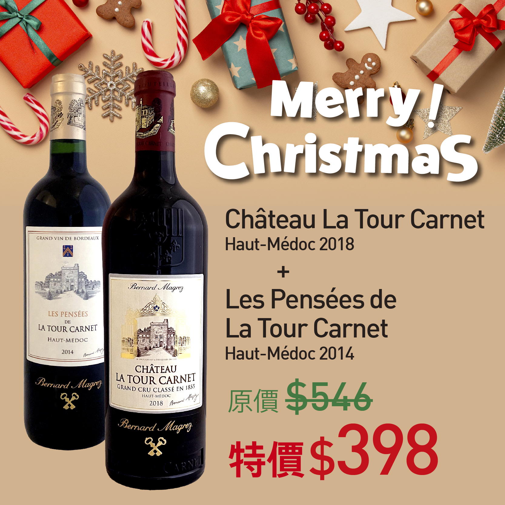 Château La Tour Carnet Haut-Médoc 2018 + Les Pensées de La Tour Carnet Haut-Médoc 2014